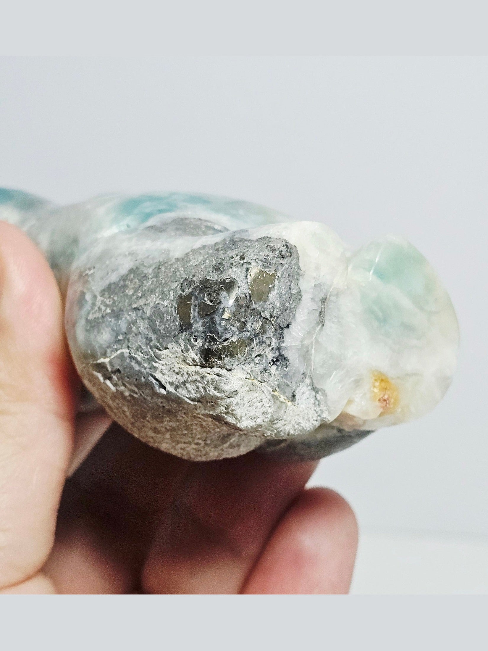 - Stone: Caribbean Calcite with Pyrite (Blue Calcite + Aragonite + Iron Pyrite)